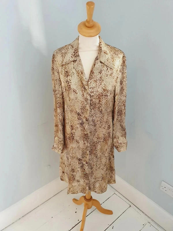 Womens Vintage Retro Long Sleeve Snakeskin Silky Satin Shirtdress Dress UK12 M