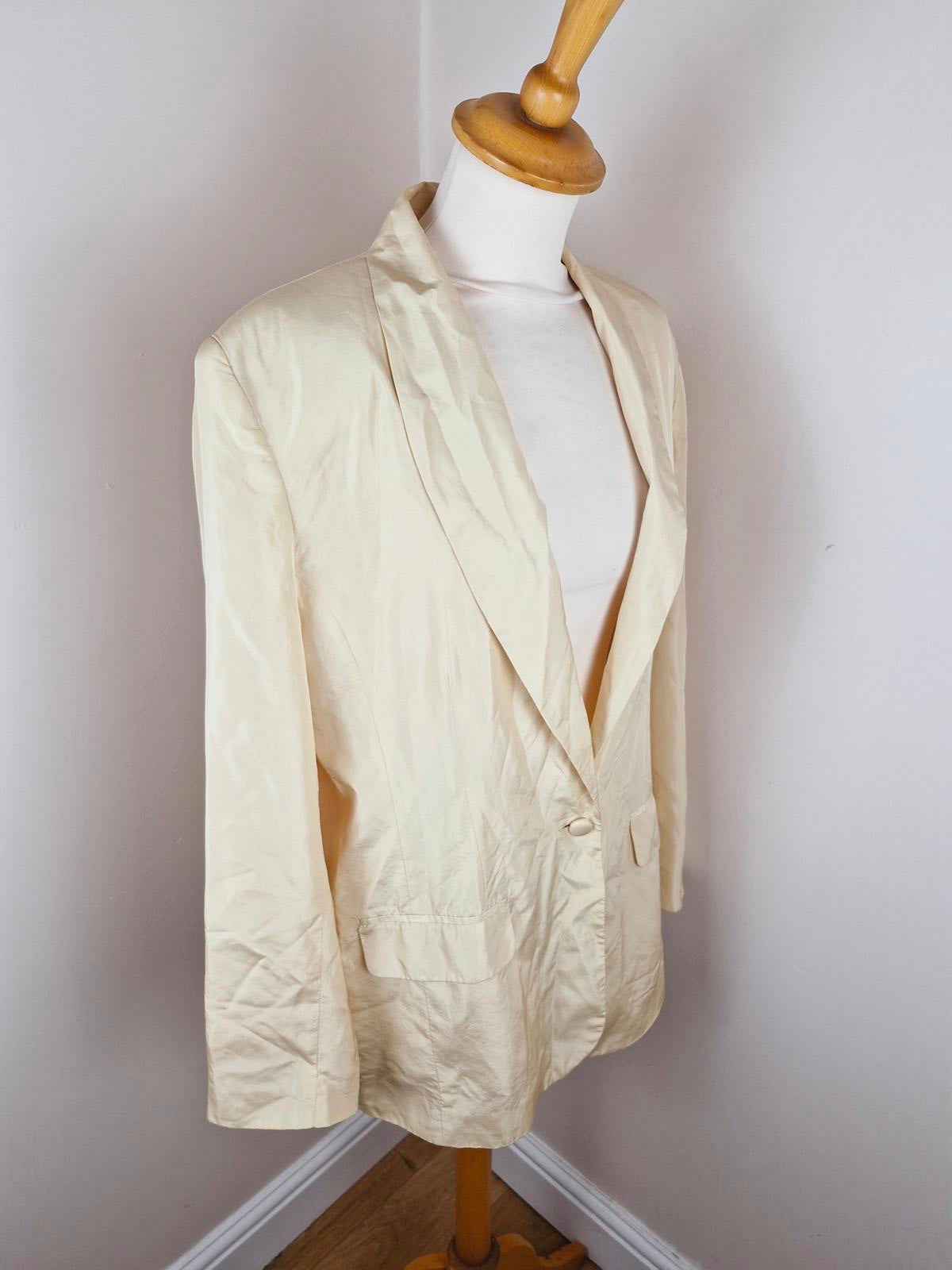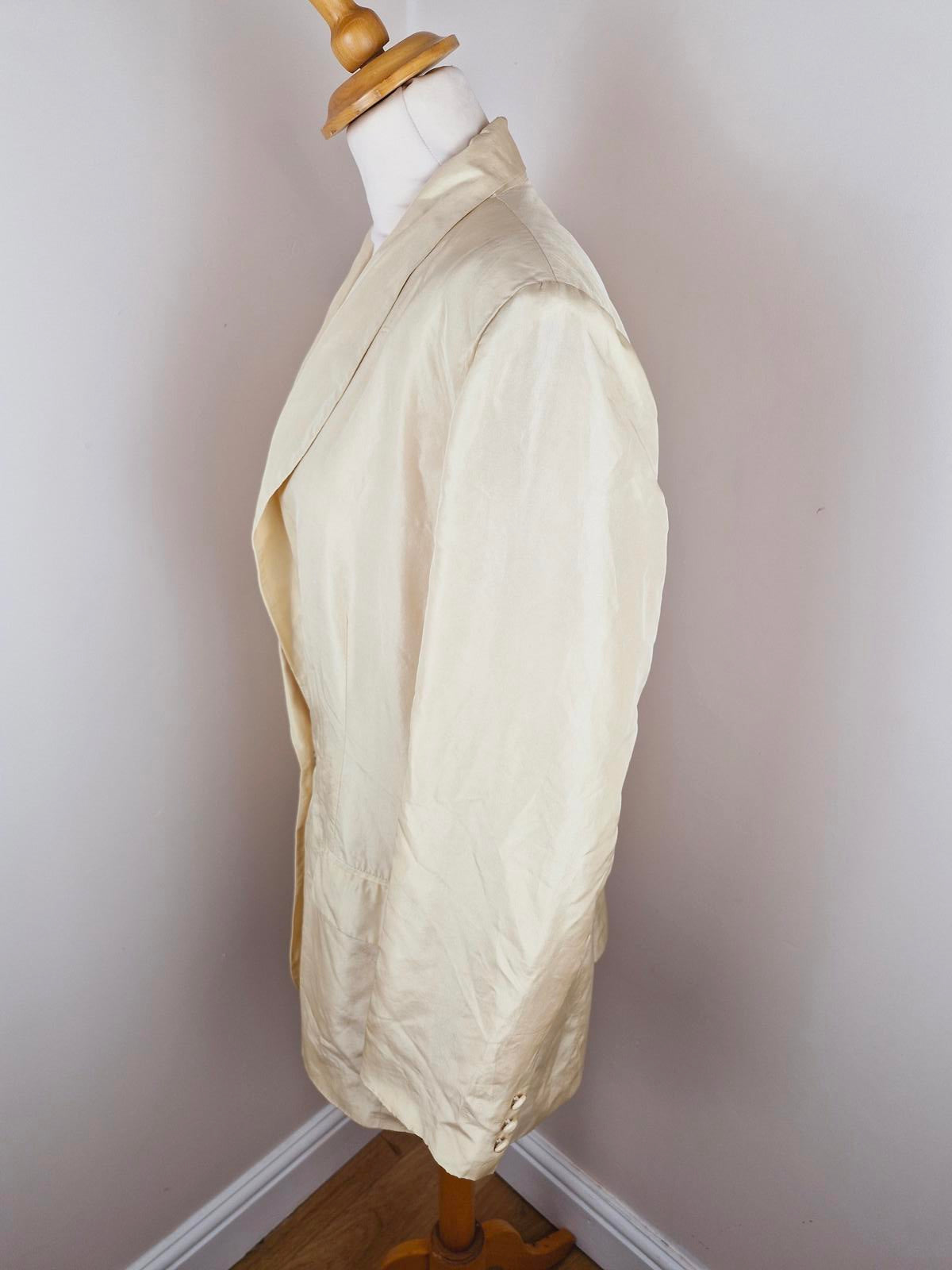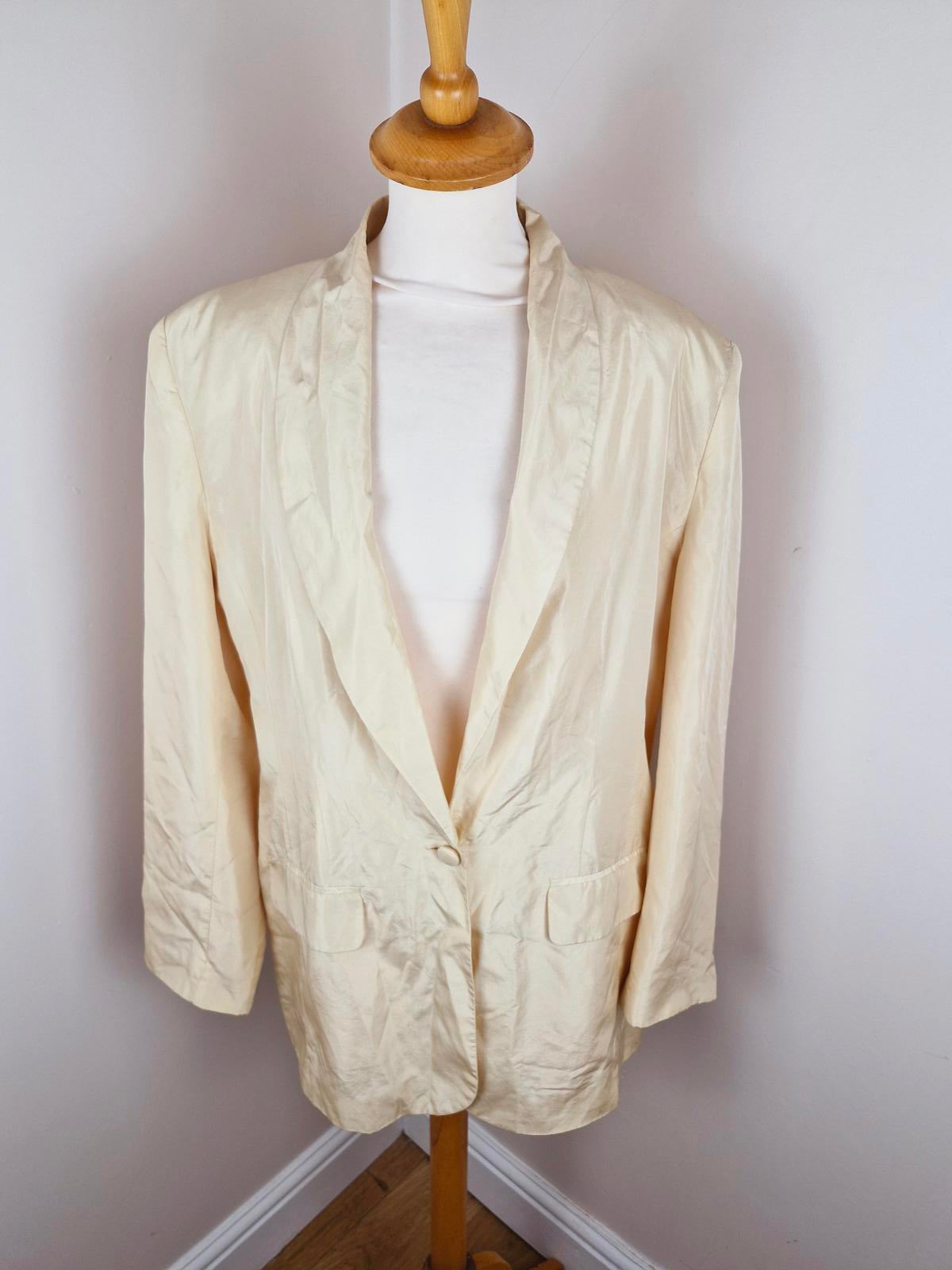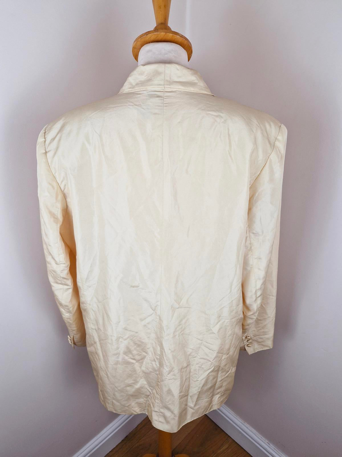 Womens Vintage Silk Yellow Cream Blazer Jacket Top UK12 M