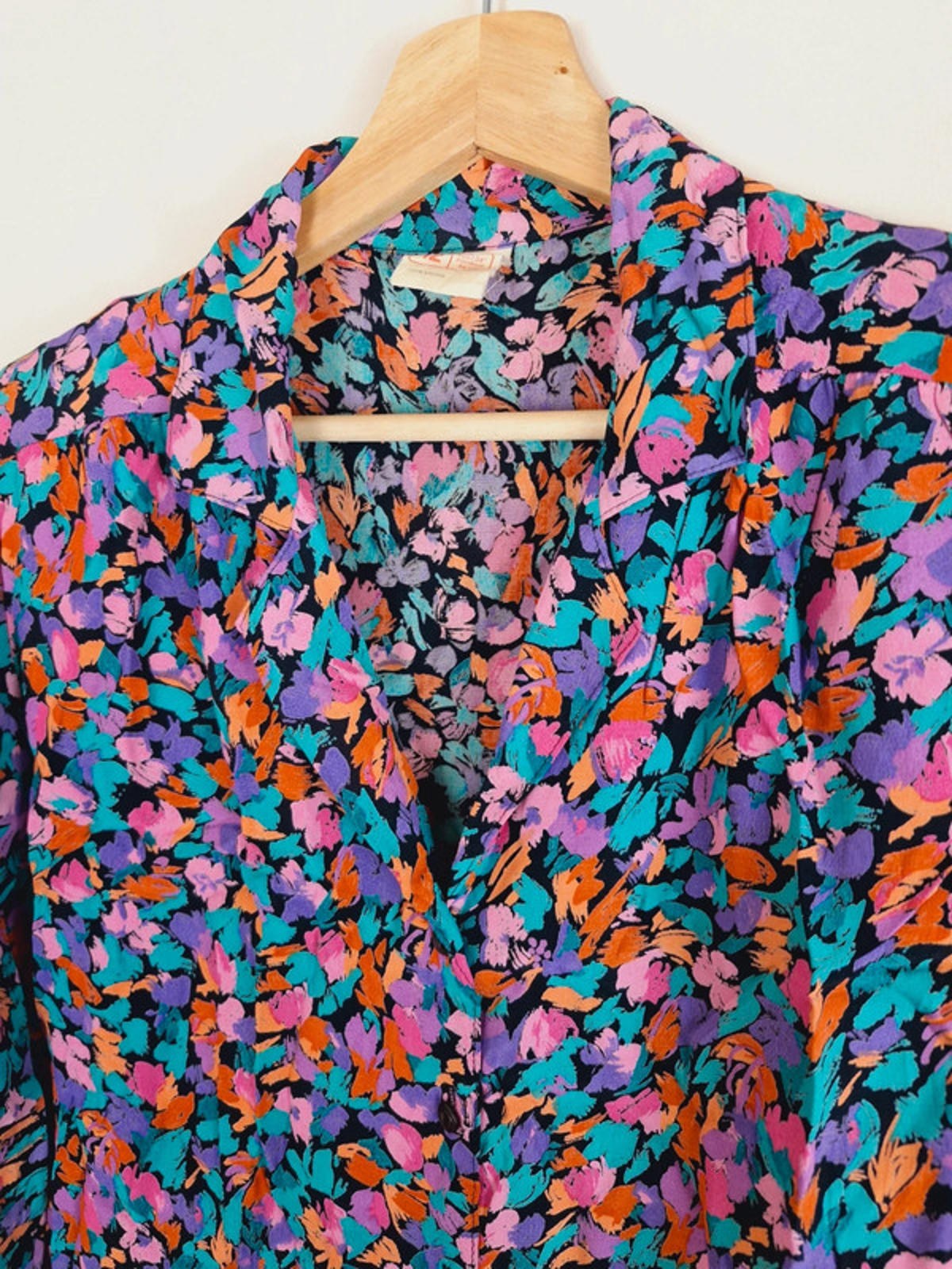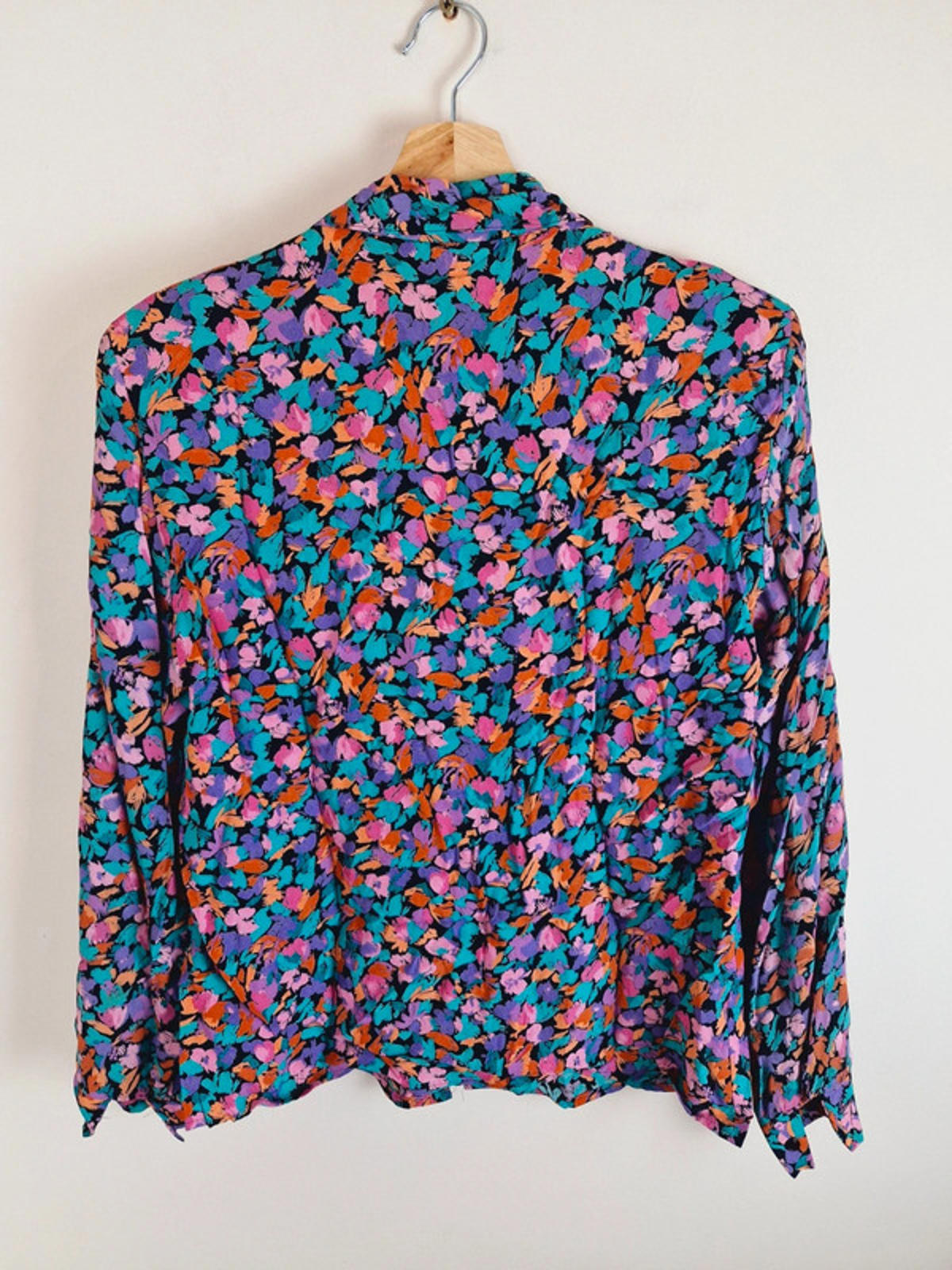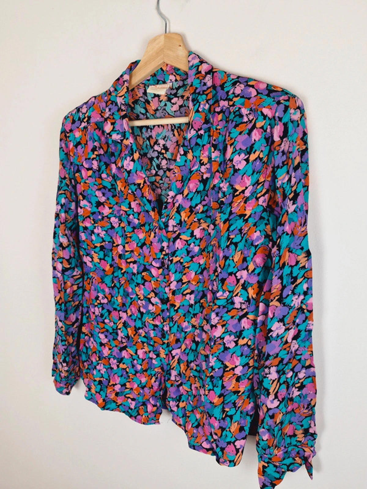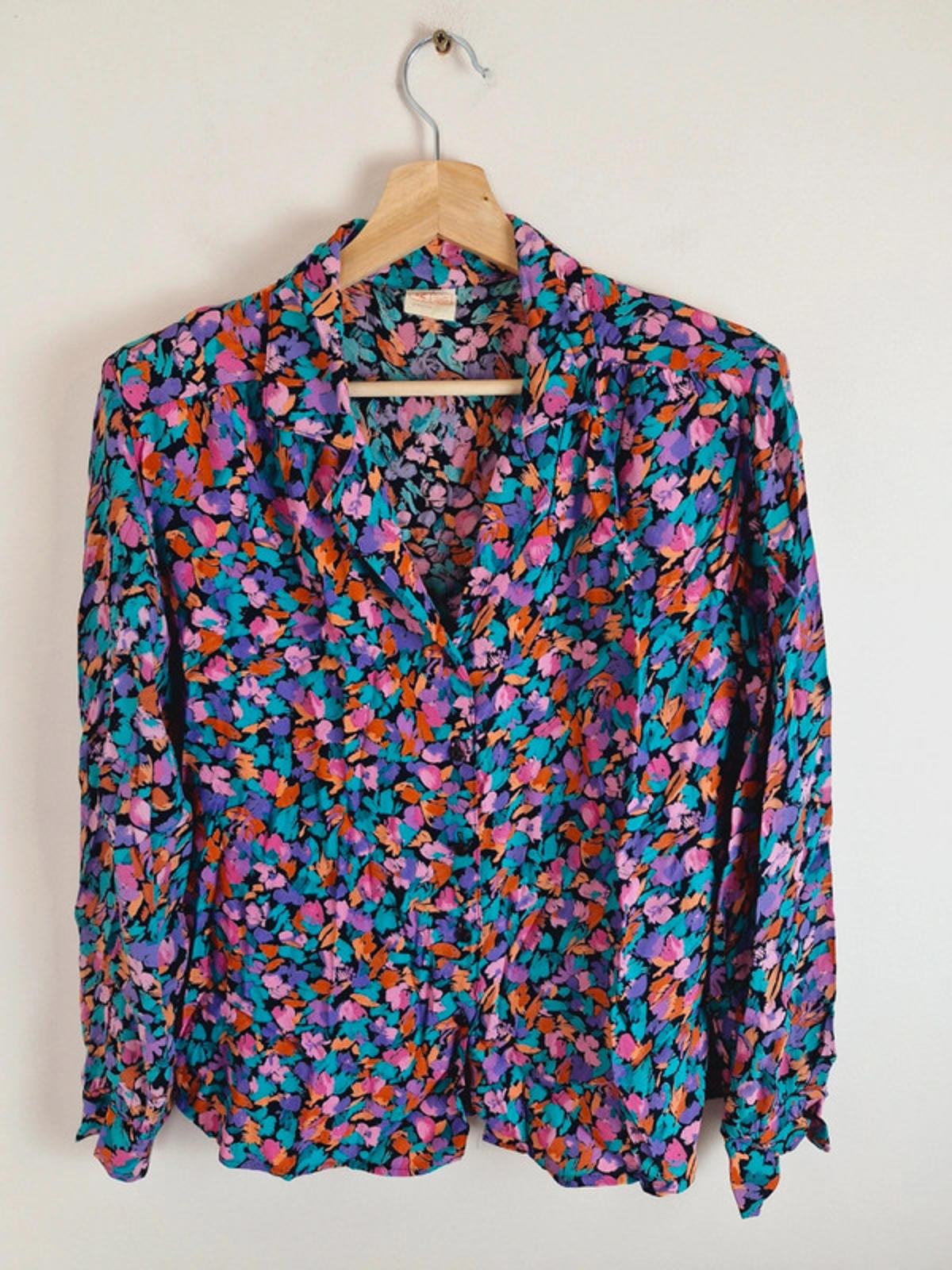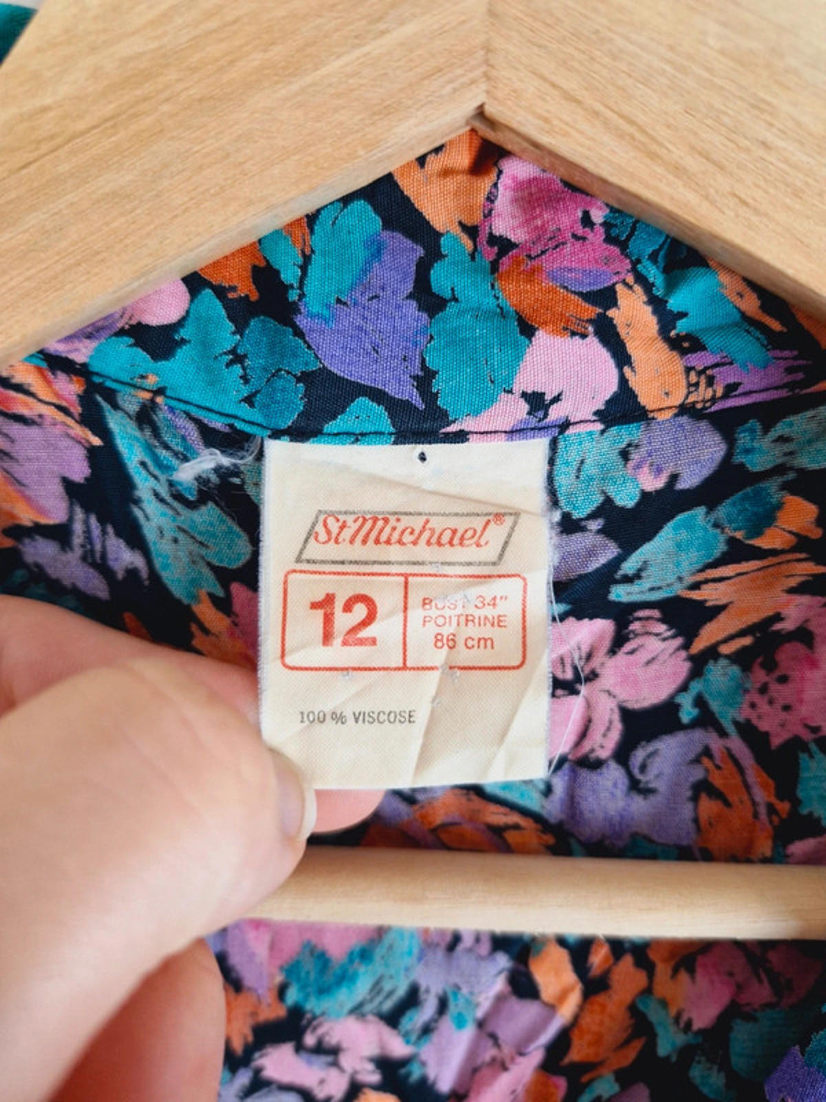 Womens Vintage St Michael Long Sleeve Funky Viscose Shirt Top Blouse M