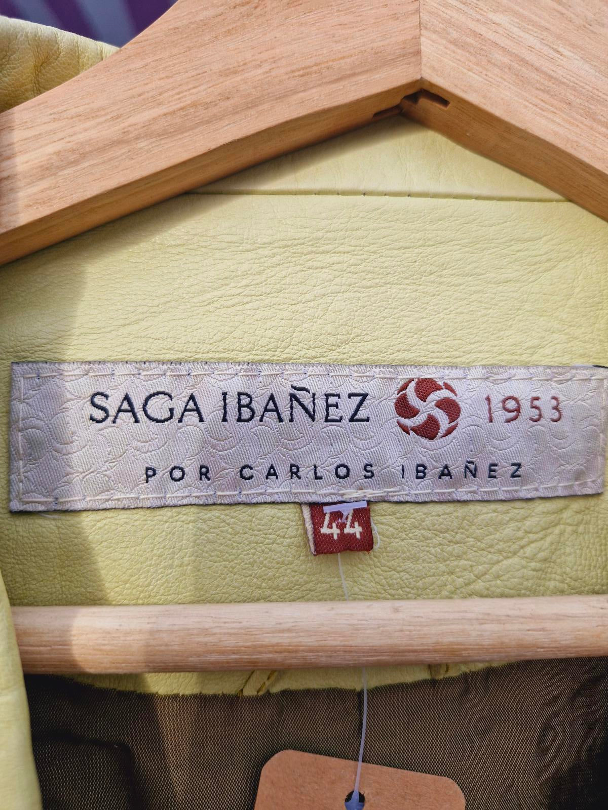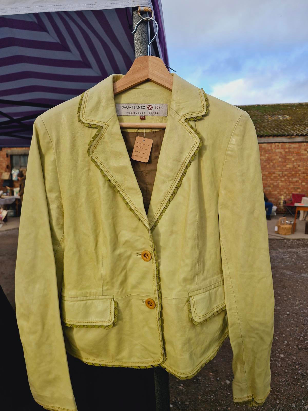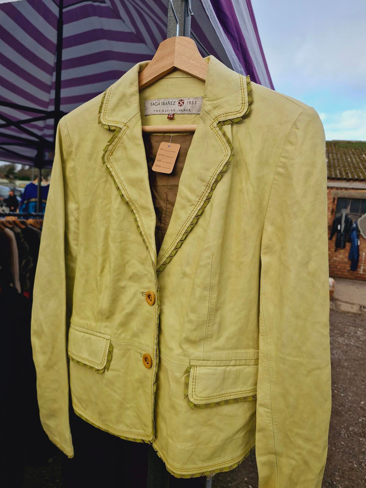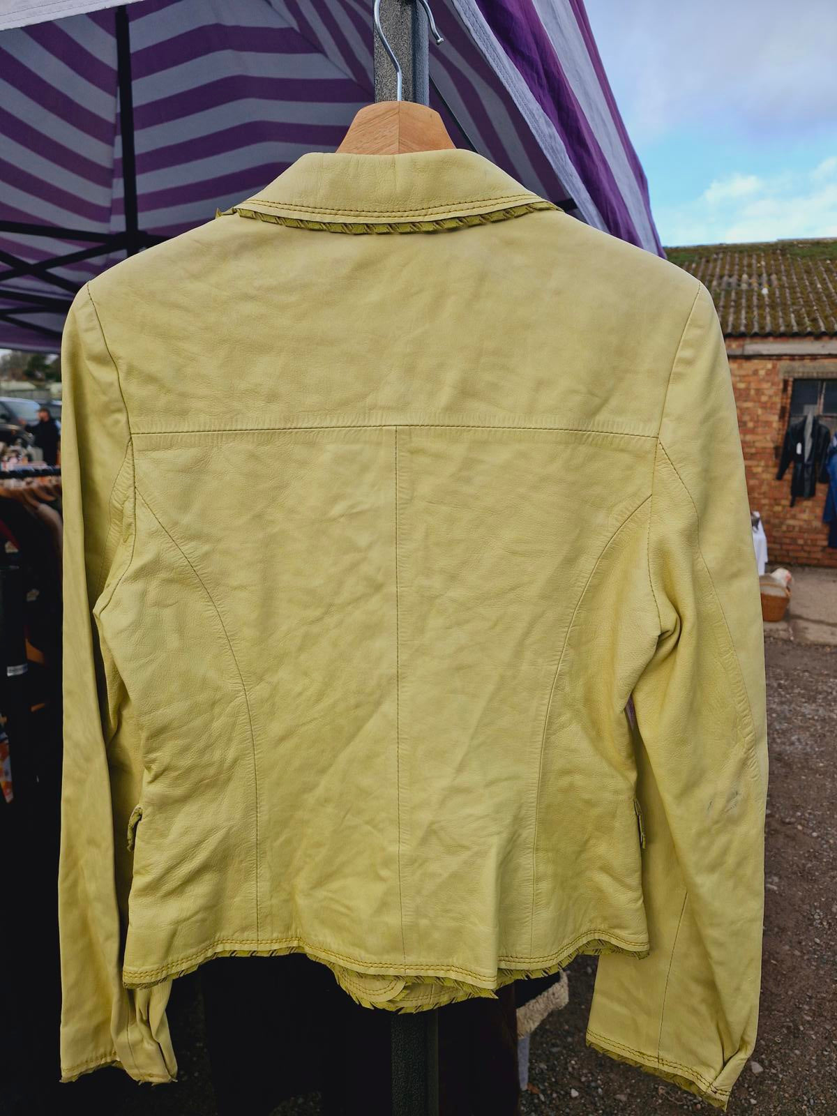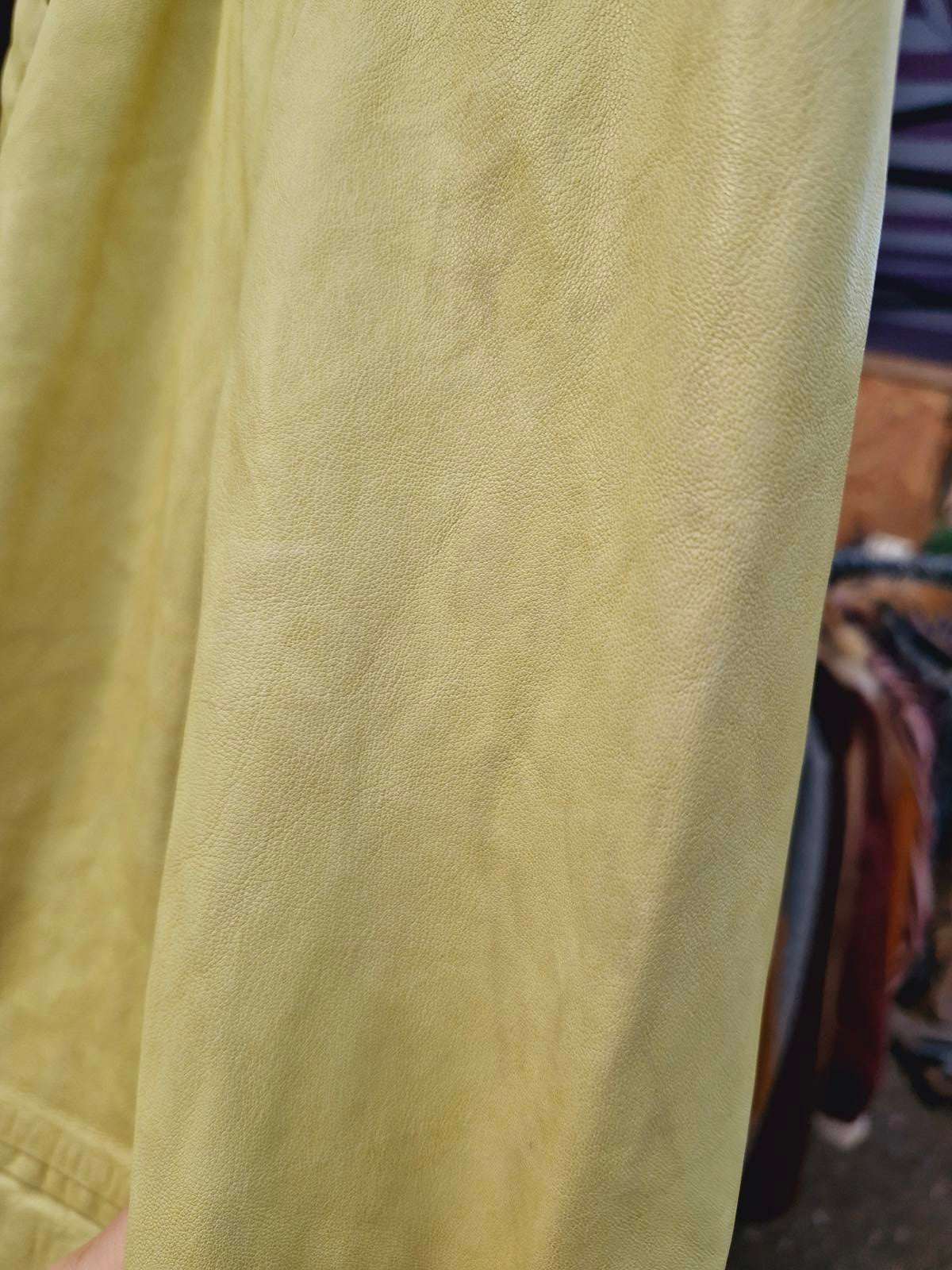 Womens Vintage y2k Real Leather Green Yellow Jacket Blazer Coat S